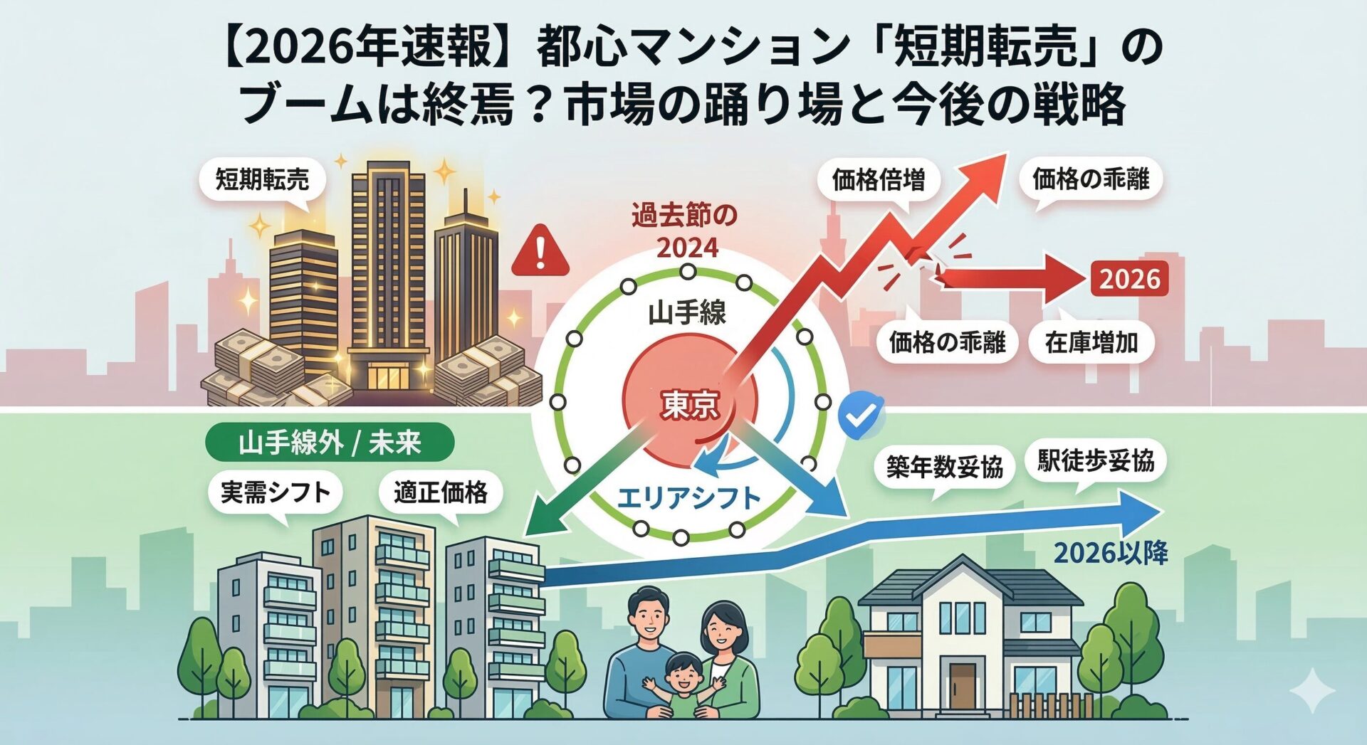 2023年〜2024年の「転売ヤー祭り」はすでに過去の話です。今後は短期転売で利益を出すのは難しく、市場は**「実需(実際に住む人)」**中心の動きに戻っていくでしょう。