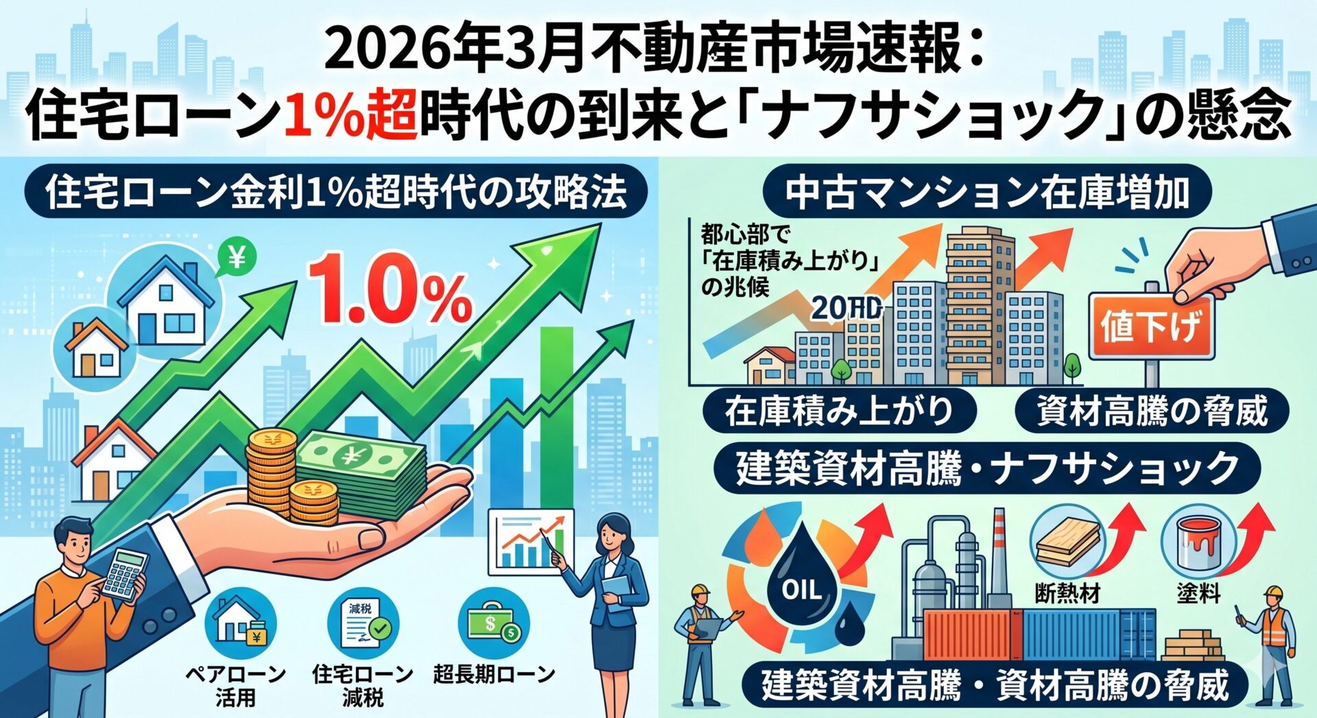 - 2026年3月不動産市場速報:住宅ローン1%超時代の到来と「ナフサショック」の懸念